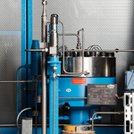 These one, two or three- stage metal diaphragm compressors in a vertical design with integrated diaphragm control are used for applications with moderate flow rates and operating pressures up to 800 bar for almost all process gases. This compressor series can be performed both, air and water-cooled, depending on the requirement. The offer of equipment is ranging from measuring technique, such as pressure and temperature monitoring of the process gas, pulsation dampers, gas coolers or whole cooling units, automatic isolation valves, liquid separators up to a complete, programmable control unit for the compressor (SPS-technology). A control of volume flow can be realized easily, by a frequency converter or by a bypass. The equipment is designed according to the requirements of the case of application and supplied fully assembled.